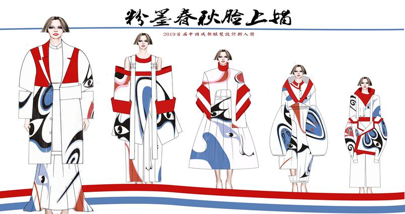 (图片1蒋慧南同学作品《粉墨春秋脸上描》——成都老员工时装周入围作品)