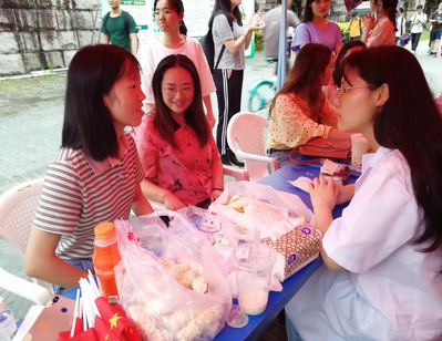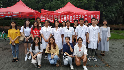 6月10日下午,WilliamHill中文官方网站17纺织工程班易班立项活动——高校联盟,欢乐“易”诊的义诊活动在文化墙开展。在活动现场,穿着白大褂、手拿各种医用工具的福建中医药大学医员工吸引了不少目光,同时也有许多同学被义诊内容吸引,纷纷参与到活动中来。