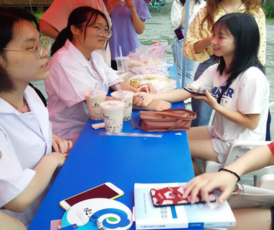在活动中,17纺织班团支部还推出了药理小知识问答的游戏环节,参与进来的同学获得精美明信片一张和小零食一包,成功通过药理小知识问答的或者参与到义诊中的同学在扫码进入易班签名墙后额外获得易班熊定制印章一枚。