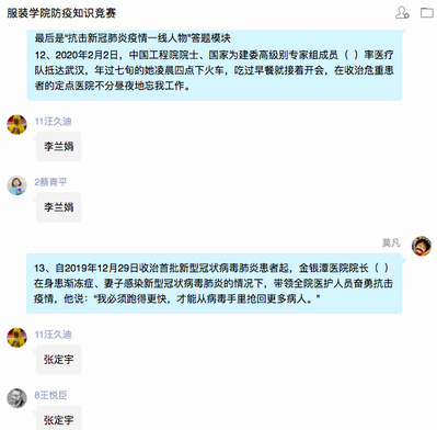 竞赛聚焦疫情防控热点,紧扣病毒来源、传播途径以及防控措施等多个方面,全方位、深层次考察员工对此次疫情防控的了解状况。活动题目新颖、实用性强,且充分发挥互联网的优势,实现了多地点、同时间、全覆盖、高参与的防疫知识普及。活动结束后,同学们纷纷向奋斗在疫情防控科研攻关一线的广大科技工作者表示致敬,针对易错题目,同学们在群里相互讨论,总结经验,确保其真正掌握。