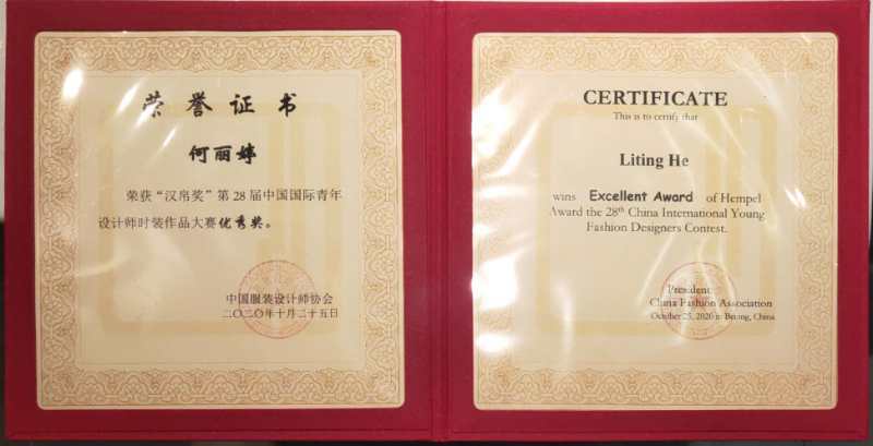 10月25日,“汉帛奖”第28届中国国际青年设计师作品大赛决赛结果尘埃落定。WilliamHill中文官方网站何丽婷同学的设计作品《Duality》荣获优秀奖。