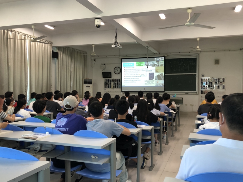 讲座期间,楼教授用生动的比喻和细致的描述,给予了同学们极大的启发,让刚入学的新生对纺织工程专业有了全新的认识,对同学们建立认识,培养兴趣起到了重要作用。