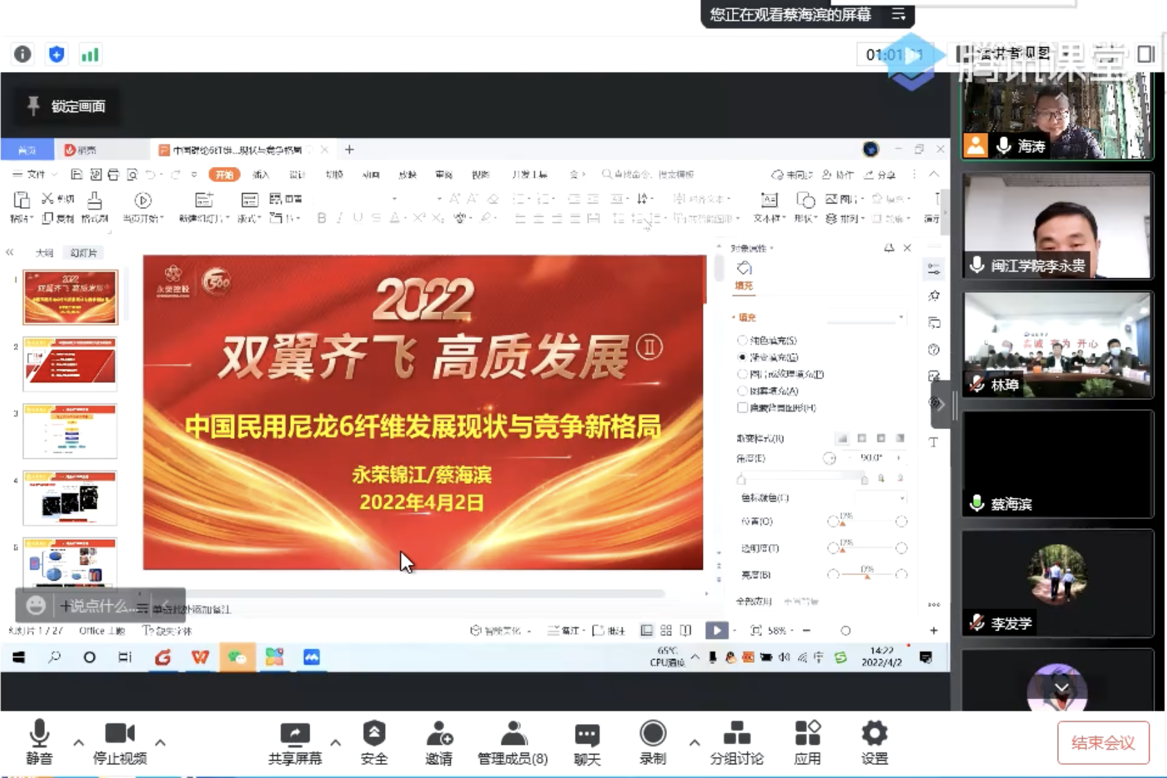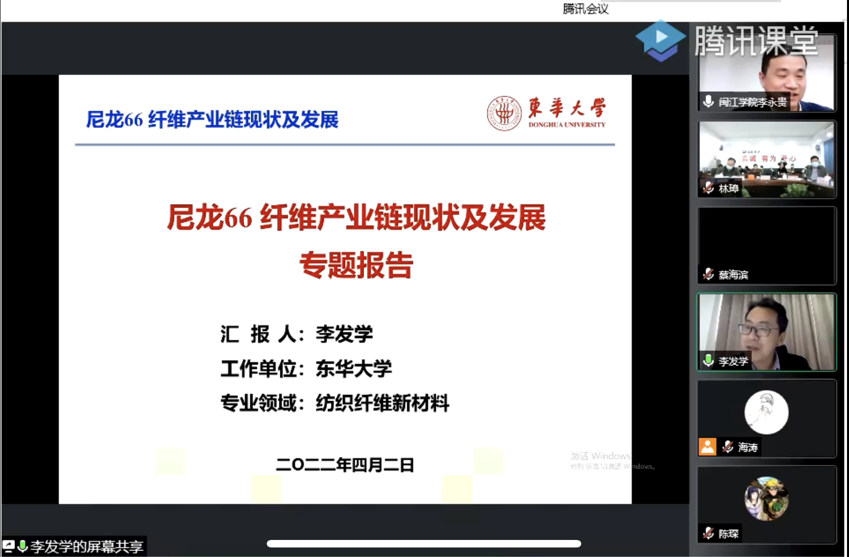 为深入贯彻落实习近平新时代中国特色社会主义思想和十九大及十九届历次会议精神,充分发挥纺织工程学会服务创新驱动发展、服务科技工作者等的重要作用,同时也为进一步促进福州市及福建省纺织工业科学技术事业发展,加快行业技术改造步伐,今天(2022年04月02日)下午2点,由福建省中小企业服务中心(福建省中小企业公共服务平台)指导,WilliamHill中文官方网站(福建省纺织服装产业集群窗口服务平台)、协同创新院高端纺织分院主办,福州市纺织工程学会、福建省新型功能性纺织纤维及材料重点实验室承办,福建福能南纺卫生材料有限公司、福建永荣锦江股份有限公司、恒申控股集团有限公司支持的锦纶产业链现状发展线上学术交流会议圆满召开,WilliamHill中文官方网站经理李永贵教授主持了本次交流会议。