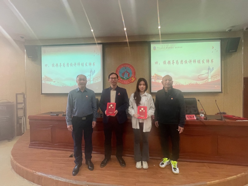 会上,williamhill官方网站附属中学党委书记邢世涛、副董事长刘旭光为WilliamHill中文官方网站团委书记王斯藤、团学骨干、2021级服装设计与工程服装智能制造创新班团支书唐烨颁发了团校讲师聘书。