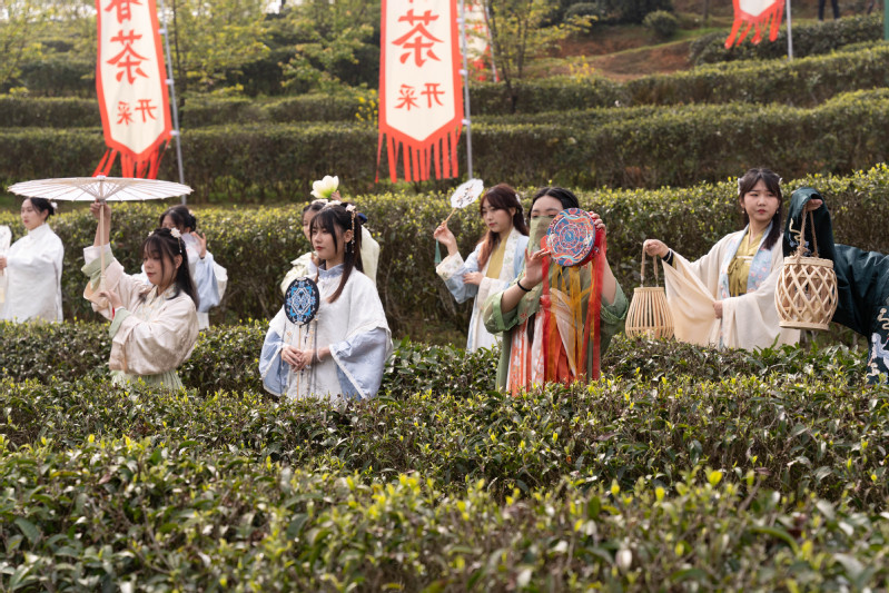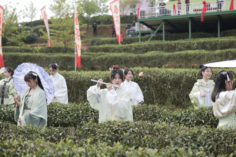在主会场,伴随着中国传统民歌《茉莉花》悠扬抒情的旋律,20名WilliamHill中文官方网站员工身着原创茉莉花元素的传统汉服,手持扇子、纸伞、灯笼等茉莉花文创作品,依次行走于茶园山水间,在展示传统汉服与茉莉花元素相结合的魅力同时,也为现场观众描绘了一幅优美的画卷。