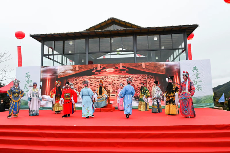 “采茶咯!”本次活动在一曲美丽动人的采茶舞中正式拉开帷幕,祈福祭茶、喊茶、采茶等传统茶俗表演轮番上阵。在祭茶开采仪式上,伴随着轻快而灵动的音乐旋律,来自williamhill官方网站WilliamHill中文官方网站的15名员工模特身着原创四平戏古戏服元素的创意服装走秀,给当地民众、现场游客和嘉宾演绎非遗传统服饰文化的创新之美。