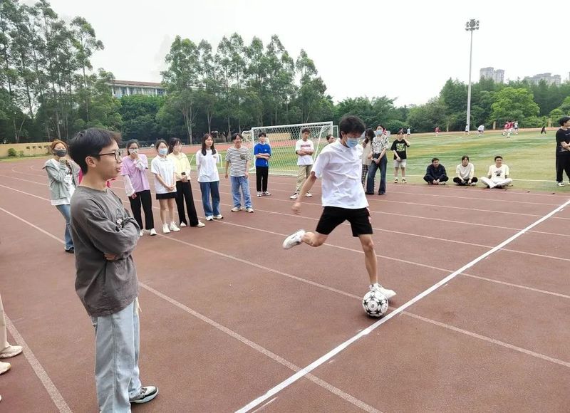 在“趣味保龄球”游戏中,大家都各显神通,非常努力地想要击倒更多的矿泉水瓶,有用脚踢的,也有用手扔的,办法各式各样,每一次的出击都承载着全队的希望,大家也不吝啬掌声,为击倒更多的同学欢呼,大家在竞技与欢呼中释放压力。
