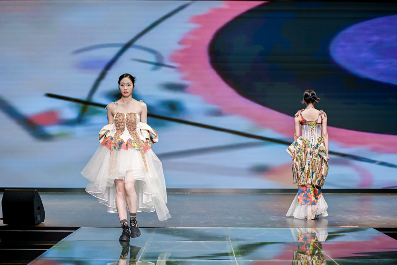 展演分为动态展演与静态展示两个部分。在静态展区,本次共展出了50套毕业设计服装及7套文创作品。公司党委副书记陈曦莅临指导本次静态展活动。