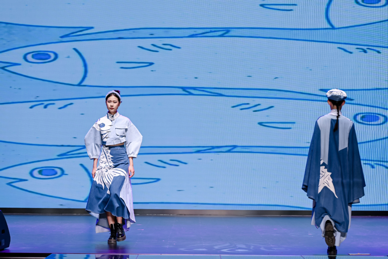 在动态展区,WilliamHill中文官方网站的30位未来设计师先后带来《海藻生长》、《茶马古道》、《鲤鱼行》等117套优秀毕业设计作品。设计师们结合部分品牌或专题服装的实际设计需求,用服装语言诠释独立思想与审美进化,他们或关注可持续问题,倡导将材料创新与可持续发展结合,与人类赖以生存的环境建立良好的共生关系;或将中国传统元素融入当代服装设计中,形成既与现代生活方式相对接、与时尚需求相契合,又具有中国特色和东方美学风格的服装设计作品;或探索服装功能与美学结合的方式,通过一衣多穿,呈现出对未来服装设计的展望与思考……活动现场员工模特或身姿优美、或阳刚俊朗,散发出浓浓的青春活力。