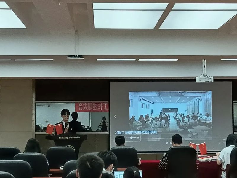 集体学习过后,2022级各班级班导生、联络员汇报了一年来联系班级工作的情况,认真归纳总结工作中的经验与不足,并表示在未来仍然会继续努力与2022级学弟学妹们一起创造更多的成绩和美好的回忆。