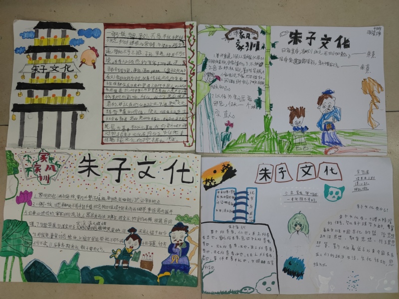 2021年习近平总书记来闽考察时,在南平朱熹园指出:“以时代精神激活中华优秀传统文化生命力”。为弘扬优秀传统美德,支教队员讲解了朱熹的故事以及“格物致知”、“求真”、“创新”等朱子思想与社会主义核心价值观中的“文明”、“和谐”、“诚信”等新时代意义,开展“朱子诗词朗诵”、“朱子文化手抄报”等活动,让他们用自己的方式表达对于朱子文化的感悟。