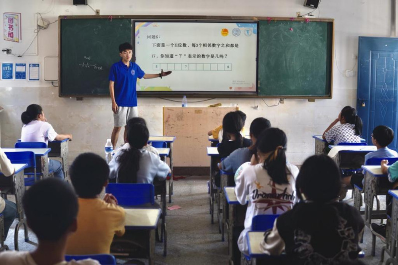 课堂上,支教队员们通过向孩子们介绍华罗庚、陈景润等中国数学家,带领孩子们学习数学家们勤奋进取、积极探索的精神,鼓励孩子们人人争当“小小数学家”。“孩子们的积极性完全超乎了我的想象!”支教队员宋沛展说到。