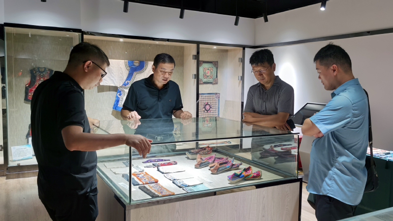 在参观了海峡两岸民族服饰展览馆期间,费宾教授和付总了解展览馆的收藏,探讨了在不同文化背景下的服饰传统与创新。