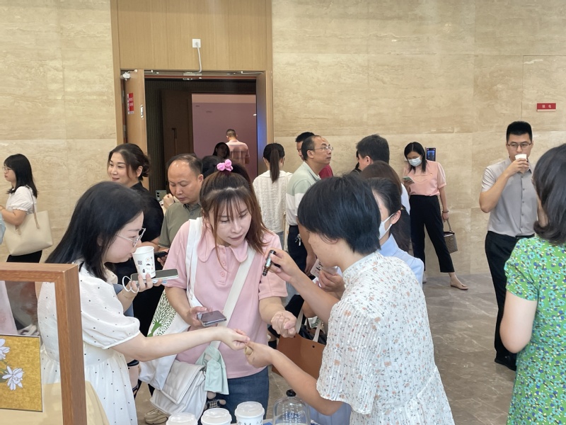茉莉一如知我意,并从轩外送香来——宋·邹浩《闻茉莉香》。茉莉精油的气味甜美馥郁,人工香料几乎无法以假乱真,最重要的是还有放松身心、滋润肌肤的功效。现场展台上的茉莉熏香,使得整个展厅香雾袅袅、沁人心脾。由合作企业开展的茉莉花精油和香水体验更是让参加主题活动的机关干部们神清气爽。