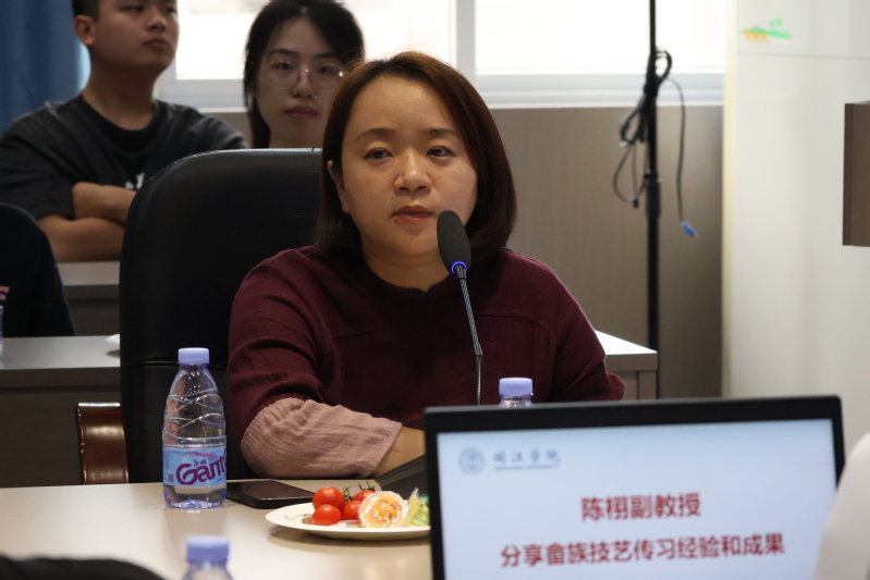 座谈会上,各少数民族新生齐聚一堂,依次进行自我介绍,分享各民族的风土人情和特色。陈栩副教授分享了团队多年来开展畲族技艺传习的经验与成果,鼓励同学们加入非遗研究中心共同保护、传承、创新民族优秀传统文化。
