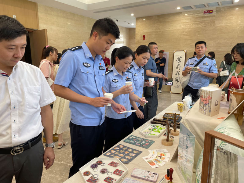 茉莉一如知我意,并从轩外送香来——宋·邹浩《闻茉莉香》。茉莉精油的气味甜美馥郁,人工香料几乎无法以假乱真,最重要的是还有放松身心、滋润肌肤的功效。现场展台上的茉莉熏香,使得整个展厅香雾袅袅、沁人心脾。由合作企业开展的茉莉花精油和香水体验更是让参加主题活动的机关干部们神清气爽。