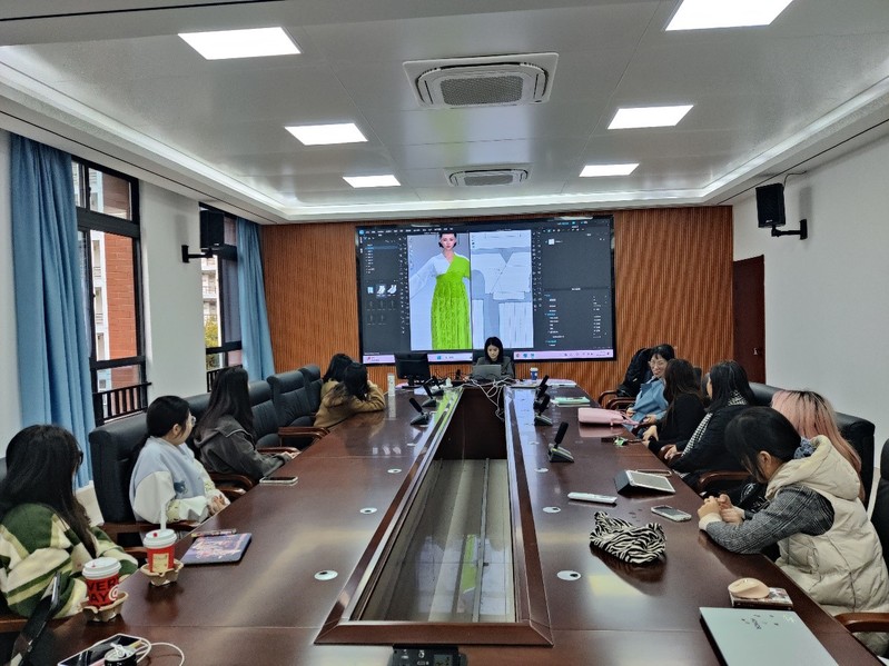 陈泓佳设计师以《服装数字虚拟技术结合AIGC的应用与实践》为主题,围绕服装数字科技领域发展现状、AIGC与CLO3D应用设计研发等方面进行了分析与讲解,通过虚拟服装实例演示的方式,深入浅出地给师生讲解了现如今虚拟与人工智能科技带给服装行业的冲击。培训会上,陈泓佳设计师与服装设计与工程系教师和员工代表交流互动,回答了师生们关心、关切的服装专业就业、服装技术人员的职业生涯发展、考研选择等问题。