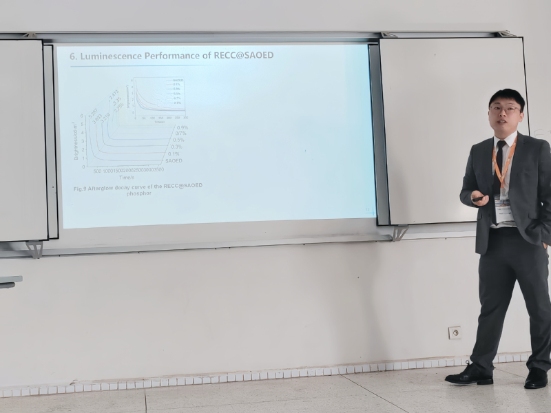 其中,陈志副教授关于《长余辉夜光材料光色调控及其在纺织品中的应用》的报告备受瞩目。他详细介绍了新型暖色调夜光纤维的制备方法及其在刺绣纺织品上的应用。陈志副教授的团队通过荧光辐射能量传递和颜色叠加原理,创新性地将香豆素红色荧光材料作为光色转换剂,结合稀土铝酸盐长余晖发光材料,成功开发出了高亮度暖色长余晖荧光纤维,并应用该纤维制成夜光刺绣,成果有望广泛应用于壁画、服装、汽车头枕和背包等工业制作领域,这一创新技术为纺织品功能化设计带来了新的途径,引发了在场专家的热烈讨论与高度评价。
