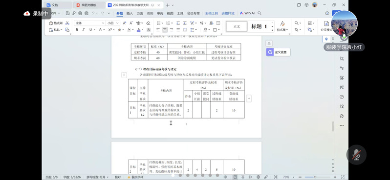 随后,吕佳副经理对2024级本科专业课程教学大纲编制工作进行了布置安排。袁小红教授以《纺织材料学》课程教学大纲为例,结合工程教育认证要求从课程基本信息撰写、课程任务、课程教学目标、课程教学要求及主要内容、考核方式及标准等方面对教学大纲制订、教学过程实施等方面进行了详细讲解,使老师们深入理解课程教学大纲如何用于课程目标和毕业要求的达成分析。