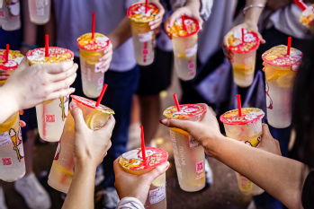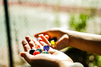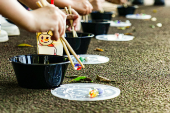 图为2024级服装与服饰2班进行“夹弹珠”游戏