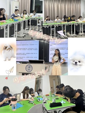 图为2024级服装设计与工程1班暖心纸飞机与压力纸飞机游戏