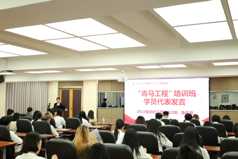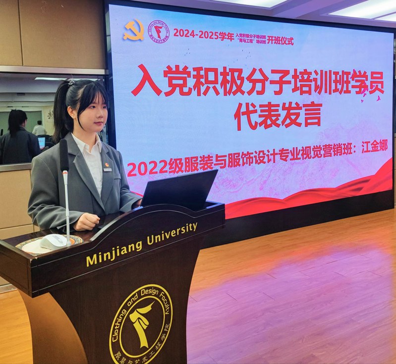 2022级服装与服饰设计专业(视觉营销班)江金娜、2022级纺织工程专业陈欣茹分别作为入党积极分子培训班学员代表和“青马工程”培训班学员代表作表态发言。王斯藤详细介绍了本次培训的课程安排和纪律要求。