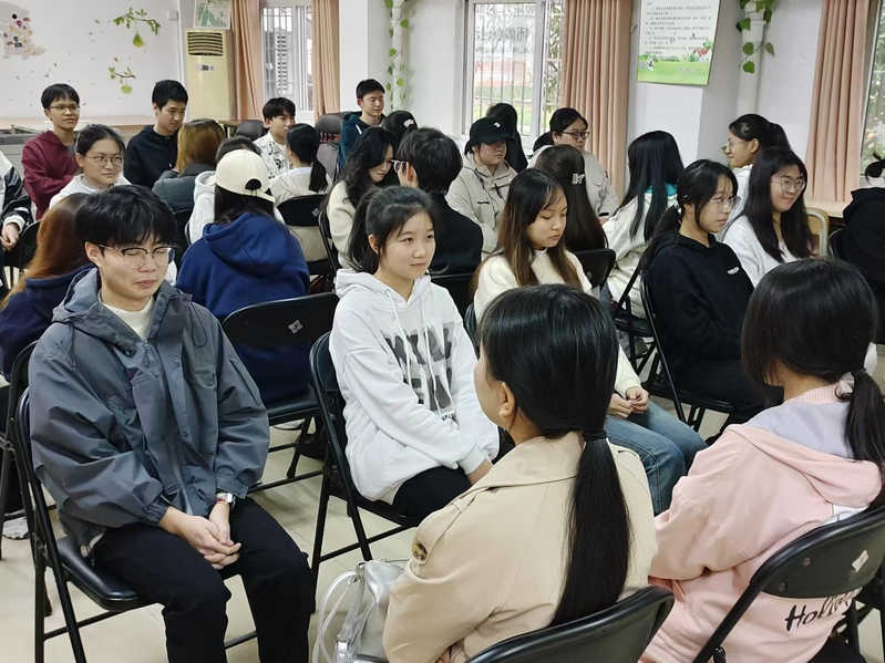 本次活动包含压力认知讲座、解压体验活动和成长感悟分享三个部分。活动伊始,张春林老师深入浅出地讲解了压力的定义、来源和对个人身心健康的影响,引导同学们正确认识压力并非都是负面的,而是成长过程中的一种挑战和机遇。随后,张春林老师以“正念呼吸”为导入,带领同学们开展吃葡萄干、对视高手、故事接龙、八段锦正念呼吸和焦虑探讨等趣味解压活动,让同学们在轻松愉快的氛围中放松身心,帮助同学们释放内心的压力,掌握有效的压力应对策略,为心灵赋能。