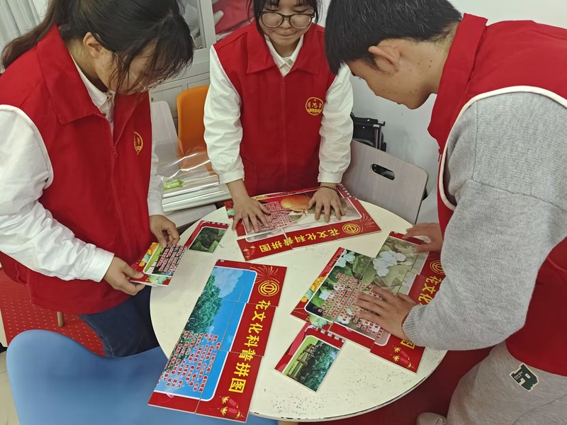 活动尾声,志愿者们在花艺老师的引领下游览晋安河公园。在老师的细致讲解中,穿插猜灯谜、拼花文化科普拼图等体验活动,志愿者们对中国传统插花文化的认知逐步加深。他们心中传承与发展非遗文化的信念,恰似破土的嫩芽,在体验中茁壮成长,愈发坚定。
