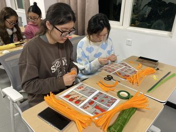 在手工制作环节中,同学们一同学习了中国结、石榴籽吉祥如意、团结友爱的象征意义,并现场进行手工制作。在制作过程中,同学们互帮互助,共同协作,不仅锻炼了自己的动手能力,还加深了大家对民族团结重要性的认识。