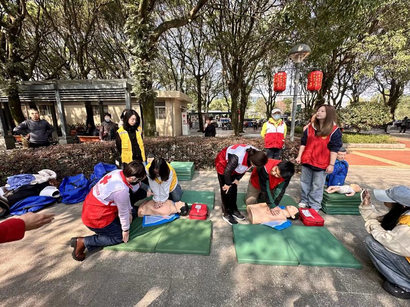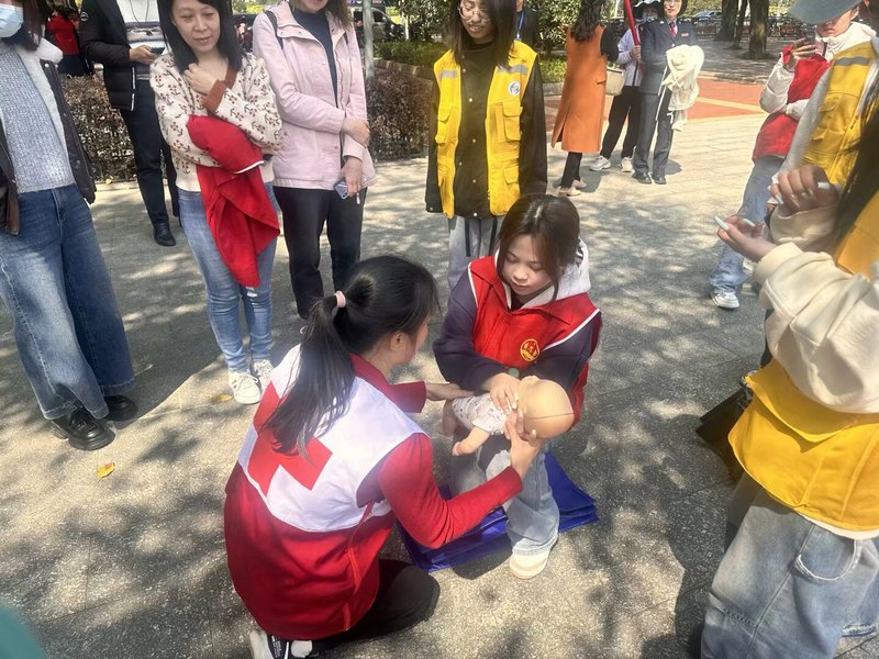 活动前期,“小服星”志愿服务队通力协作,迅速完成场地规划与布置,将现场合理划分为主舞台区、急救演练区、技能体验区和宣传咨询区,并有序引导居民参与各个环节,为活动顺利开展做好充分准备。