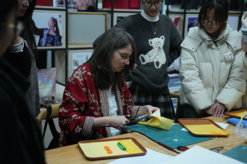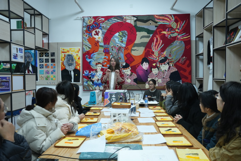 在实践工作坊中,Barbara Lange教授还现场示范太阳花拼布技法,通过布料选配、纹样设计等环节的沉浸式教学,启发师生将传统工艺融入现代设计。来自台湾的泰雅族艺术家尤玛·达陆、拼布艺术家廖桂瑜和williamhill官方网站寇海燕老师与同学们一同参加,为工作坊活动增添了多元文化视角。