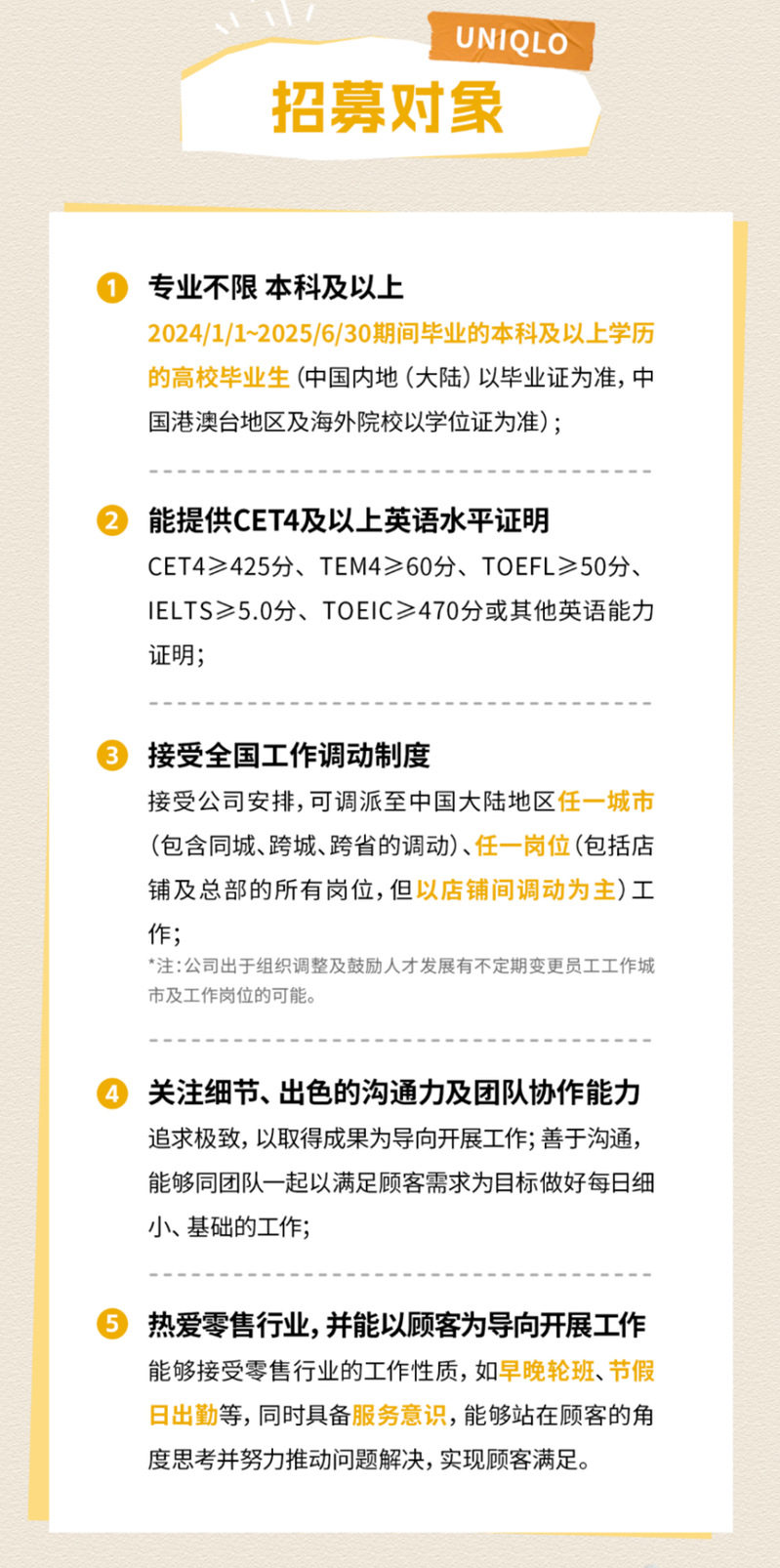 优衣库2025春季校园招聘