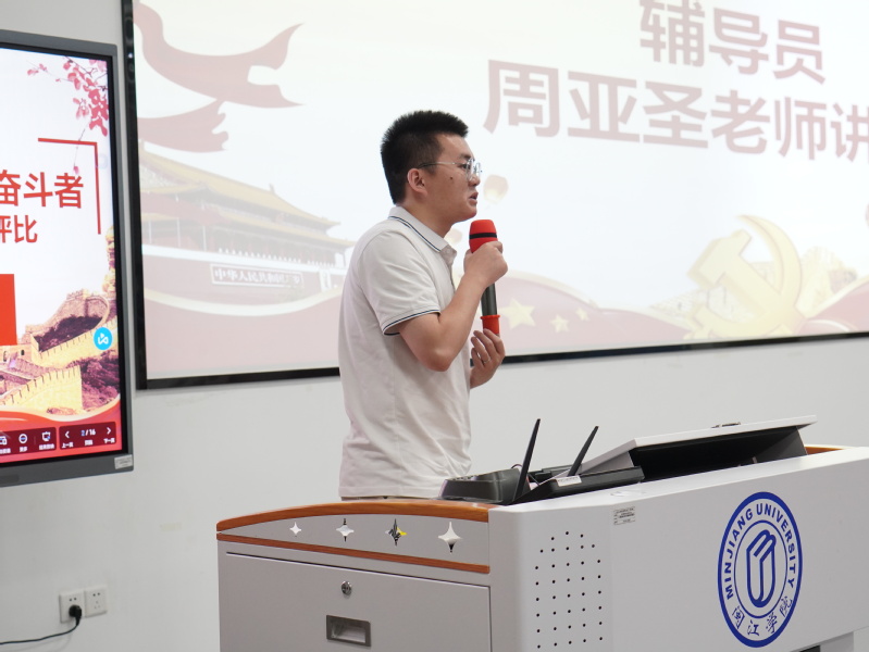 随后,辅导员周亚圣老师对各团支书在团日活动中的认真负责的态度给予了肯定,同时指出了一些不足之处。他着重提出了“团”的重要性,期望在以后的团日活动中,能够看到更多的同学积极参与其中,通过形式多样的集体活动充分彰显班级的向心力和团队精神,让团日活动真正成为凝聚青年、引领思想的重要阵地。