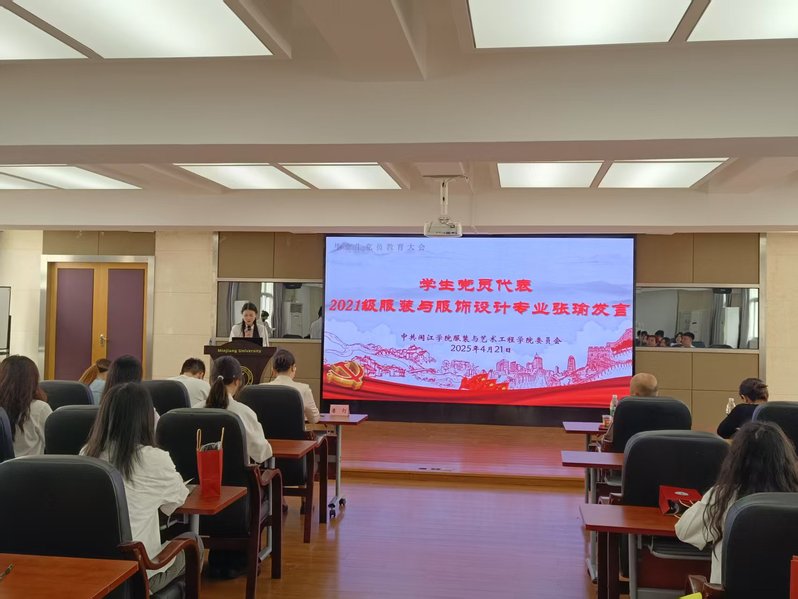 “重忆来时路,不忘爱党心”。2021级服装与服饰设计专业张瑜作为毕业生党员发言,重温了在公司走过的往日时光,她号召毕业生党员要牢记党员责任,用实际行动书写人生华章。