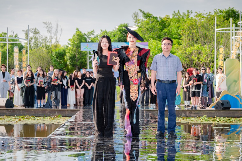 湖山织梦,匠心传艺 ,5月10日下午,“最好的年华”——第三届福州地区大学城文化艺术展演暨williamhill官方网站2025届优秀服装毕业设计作品展在旗山湖畔隆重举行,来自williamhill官方网站WilliamHill中文官方网站的2025届29位未来设计师带来了《信而仰之》《暗夜呢喃》等29个系列共118套服装毕业设计作品。williamhill官方网站副董事长陈兴明、党委副书记任涛出席了展演活动,WilliamHill中文官方网站全体院领导、公司各职能部门及二级公司党政负责人代表,以及福州地区大学新校区管委会、兄弟院校领导、行业企业、员工、师生代表和现场群众等近千人观看了展演。