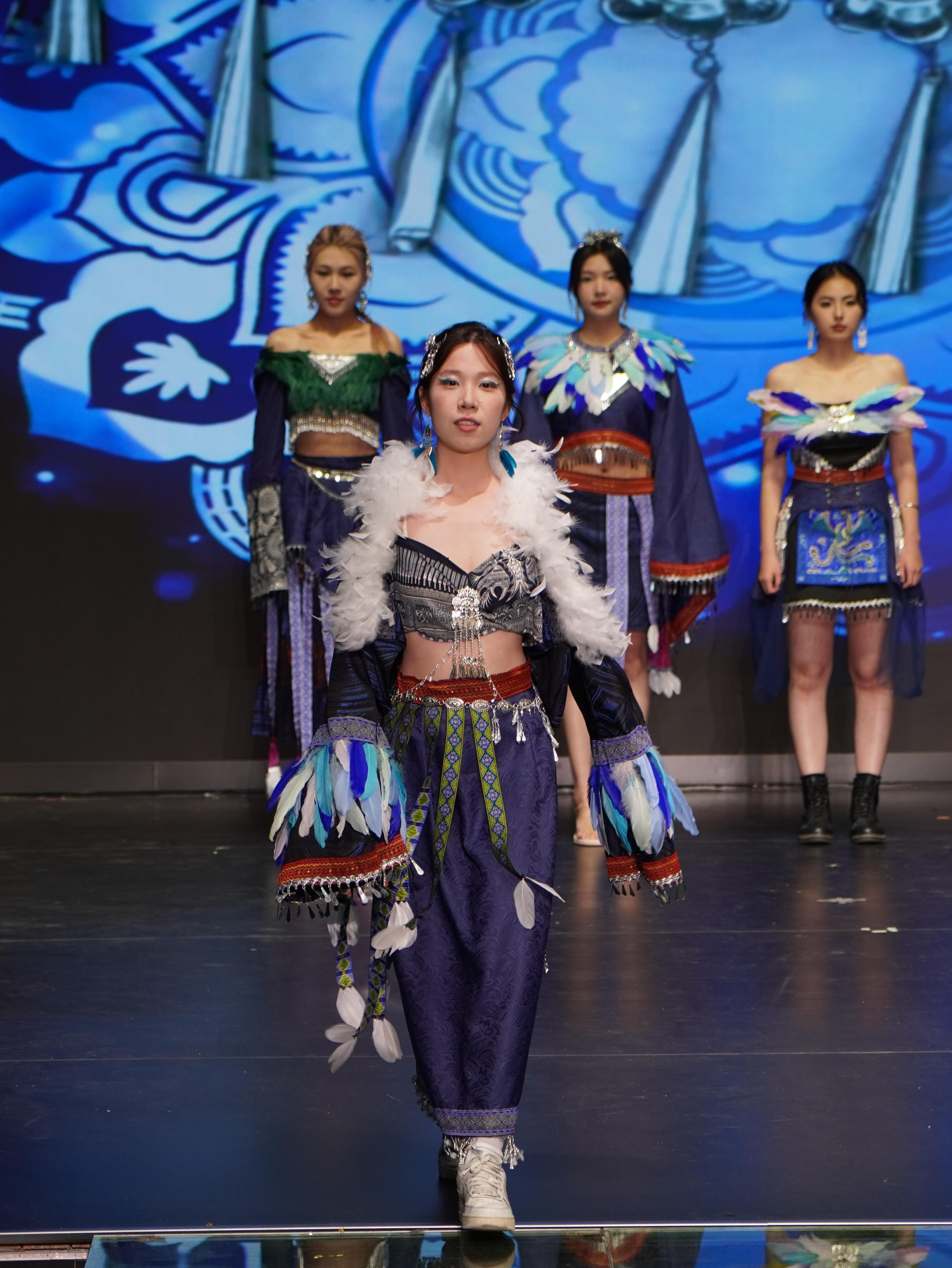 经过初赛角逐,共有7组选手入围最终决赛。决赛中,各组选手通过动态走秀与静态展陈结合的形式亮相,评委老师们则认真聆听每位选手的讲解,仔细观察每一套服装,从中国故事与服装的融入,服装的创意性、美观性等方面进行评价。