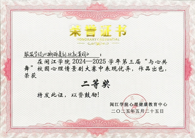 历经一个多月筹备,从确定剧本、选角、排练、磨合,公司“撕碎复刻,织就真羽”团队从初赛15支队伍中脱颖而出,在指导老师、编剧及导演的共同努力下,演员们以真挚情感塑造角色:从剧本围读时的情感共鸣,到排练场的动作打磨,再到决赛舞台的沉浸式演绎,团队通过多轮磨合将生活中的心理困境转化为动人剧情。决赛现场,演员们以精湛演技呈现角色蜕变,赢得评委及观众一致认可,荣获williamhill官方网站2025年“与心共舞”校园心理情景剧大赛二等奖。