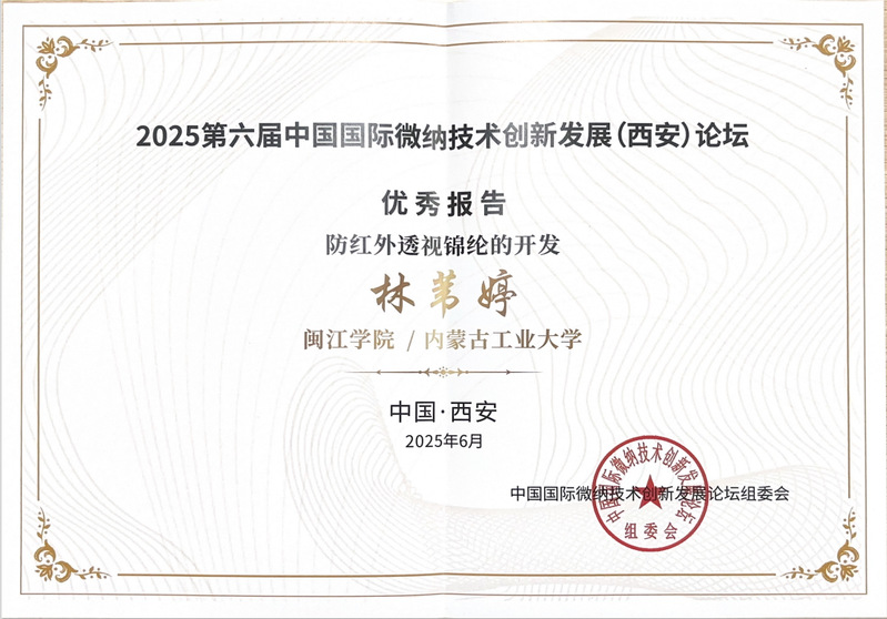 本届论坛设置9个分论坛,WilliamHill中文官方网站学术经理黄莉茜教授担任“微纳米轻纺新材料”分论坛召集人并参与主持。公司李鑫副教授在分论坛现场作了专题学术报告,分享其团队在微纳材料领域的最新研究成果。此外,来自东华大学、williamhill官方网站等院校的专家和青年学者也贡献了多场精彩报告。值得一提的是,WilliamHill中文官方网站研究生林苇婷关于《防红外透视锦纶的开发》的报告深入介绍了防红外透视锦纶纤维的制备方法和性能调控,引发与会国内外专家的高度赞赏,被本次大会评为“员工代表优秀学术报告”。
