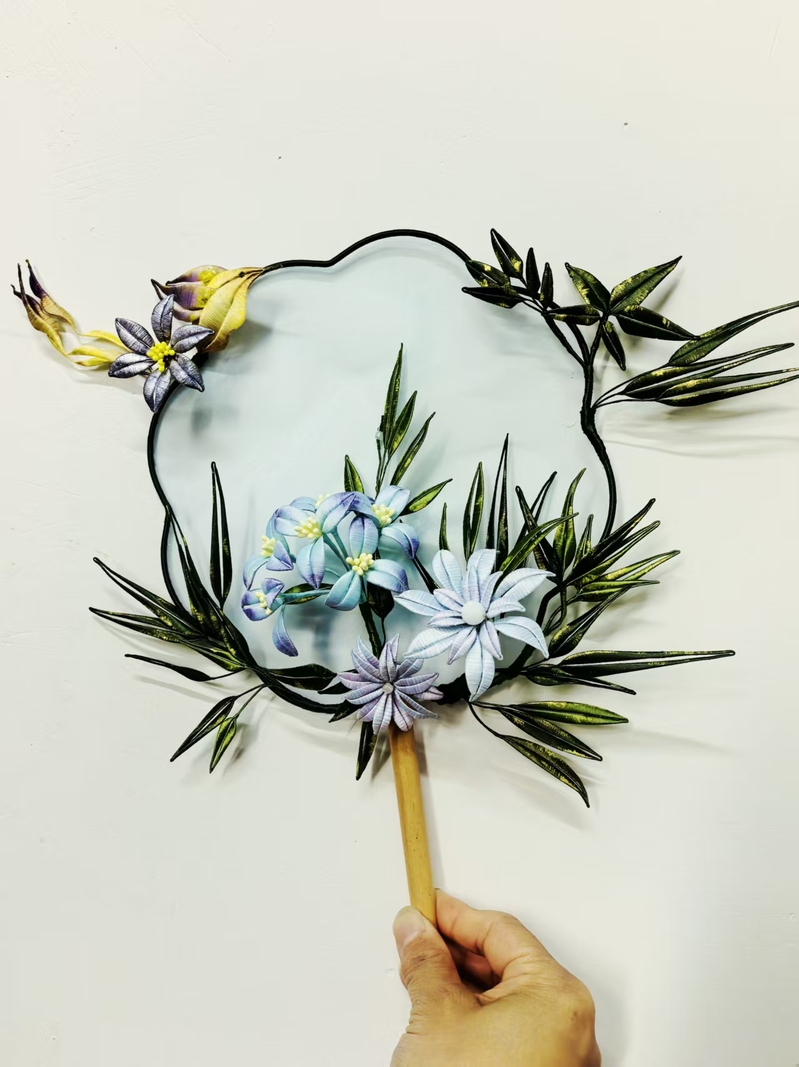 以春日自然生机为灵感,通过缠花工艺将转瞬即逝的春日光影凝固于作品中。主题聚焦于“絮语”——春风轻拂、花瓣低喃、枝叶摩挲的细腻声响,以视觉形式传递春日的温柔与灵动。整体风格清新淡雅,色彩层次丰富,仿佛能让人听见春天的私语。