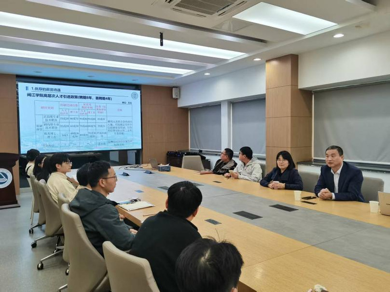 在东华大学纺织公司,调研团队参观了一流学科展示厅和实验中心,东华大学纺织公司副经理王先锋、党委副书记寿晨燕等专家教授对调研团队一行表示了热烈的欢迎。会上,双方就人才培养、教师帮扶、科研合作、联合申办会议等方面展开了深入交流并达成了东华实验班课程共建、国家级平台共建、前沿会议联合申办等合作意向。会后,调研团队还面向东华大学博士研究生进行了人才招聘宣讲并开展了座谈会。