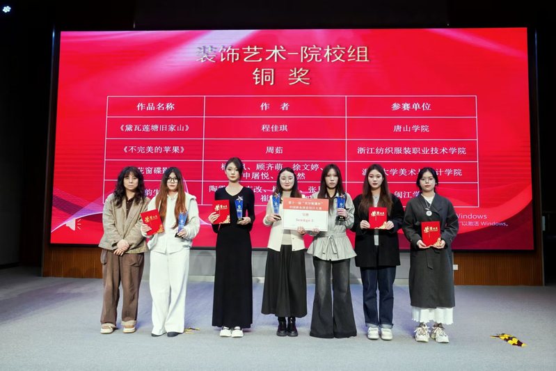 在陶雪莲、王珑澔老师共同指导下,由支改、柯立晴、张思涵、邱诗雯、崔馥馥、刘晓琴同学组成的团队凭借作品《茉韵生香》,荣获“装饰艺术-院校组”铜奖;由原滔老师指导的23级服艺3班周倬玉同学的服装作品《Stitch Utopia》荣获“服装服饰组”铜奖。