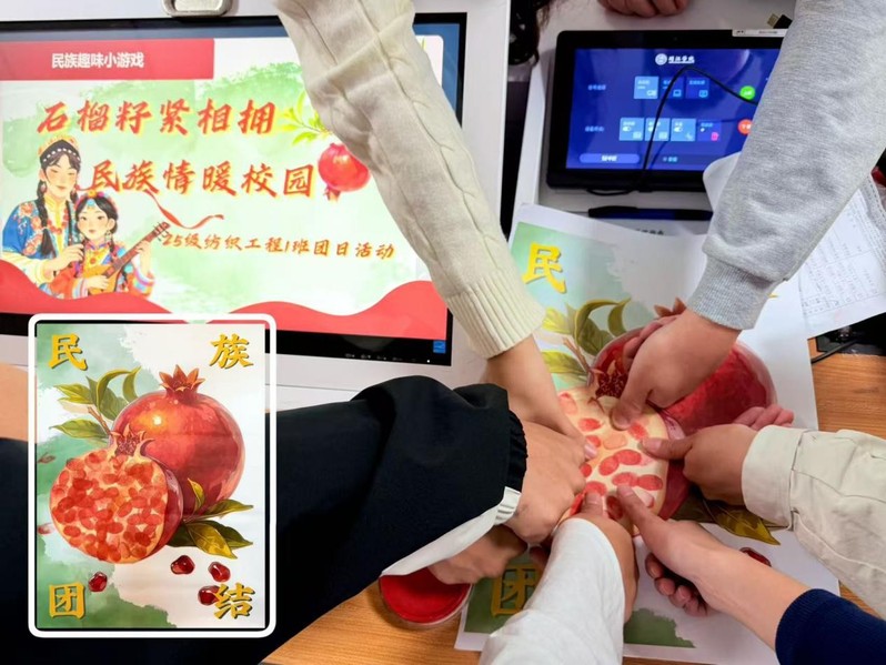 为深入学习贯彻党的二十届四中全会精神,铸牢中华民族共同体意识,近日,2025级纺织工程1班团支部组织开展了“石榴籽紧相拥,民族情暖校园”主题团日活动。