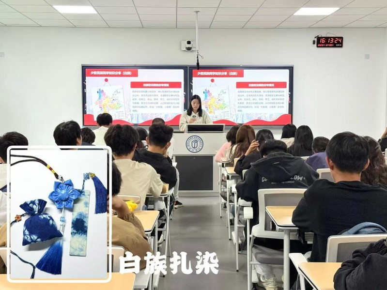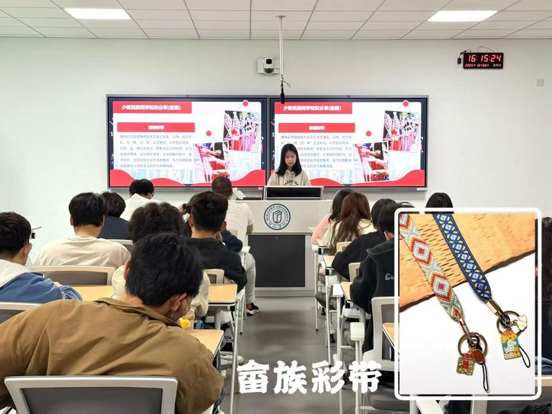 团支书首先阐述了民族团结的重要意义及青年一代的责任担当。随后,多名少数民族同学依次上台,通过图片、短视频等形式,生动介绍了本民族的服饰特色、传统习俗、节日文化与特色美食,展现了丰富多彩的民族风情。
