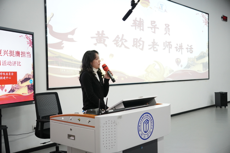 比赛结束后,辅导员黄钦昀老师对本次活动进行点评。她高度评价了各团支部别具风采的汇报形式和表演风格,希望未来能有更多的同学积极参与其中,在团日等团组织活动中增强凝聚力,培养奋斗精神,坚定理想信念。